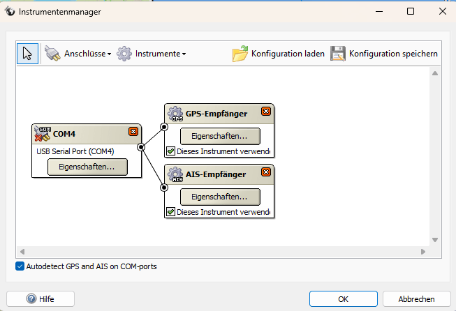 - Konfiguration Instrumentenmanager, GPS & AIS