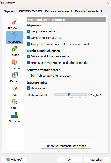 - Einstellungen der verschiedenen Kartenfenster